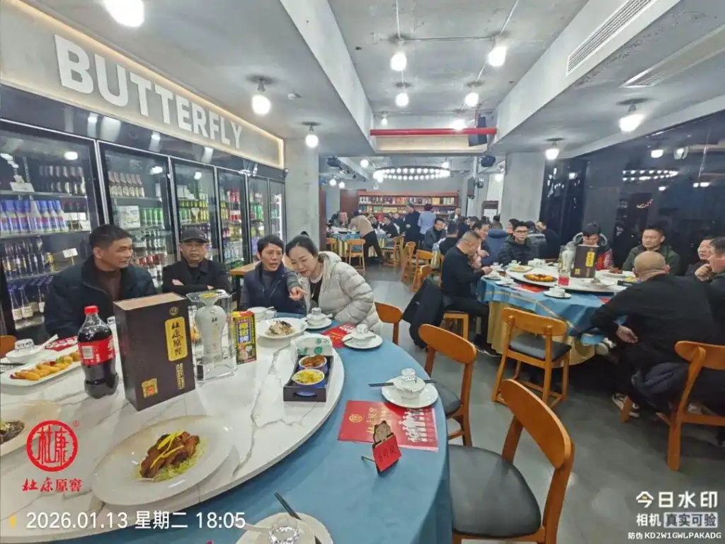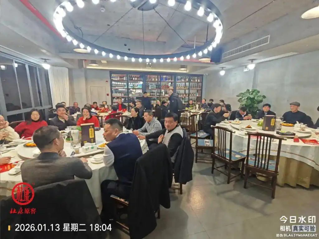 宴席之上,几桌佳肴错落摆放,酒香与菜香交融。嘉宾们推杯换盏,细品佳酿的醇厚口感,畅谈过往情谊,共话新年期许,现场欢声笑语不断,尽显团圆喜乐。